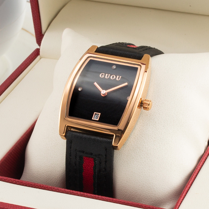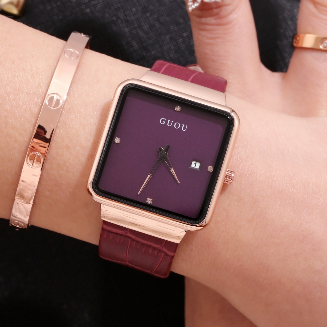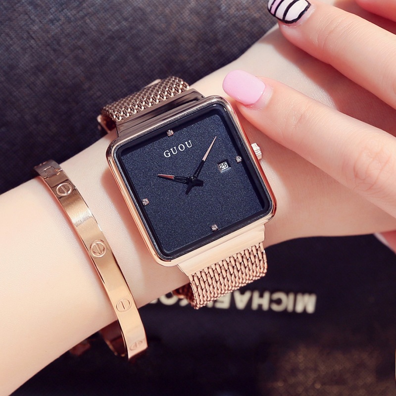 Guou古欧女時計鋼帯女性カジュアルファッション石英時計学生角形大皿防水腕時計代発