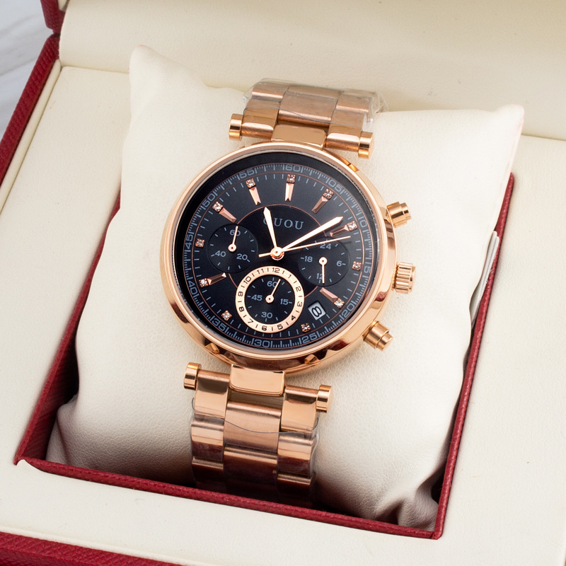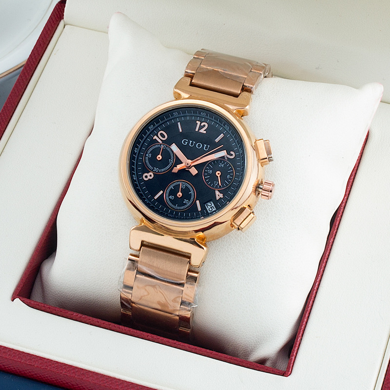 Guou多機能古欧豪華大文字板バラ金ファッション女性腕時計鋼帯多針防水腕時計