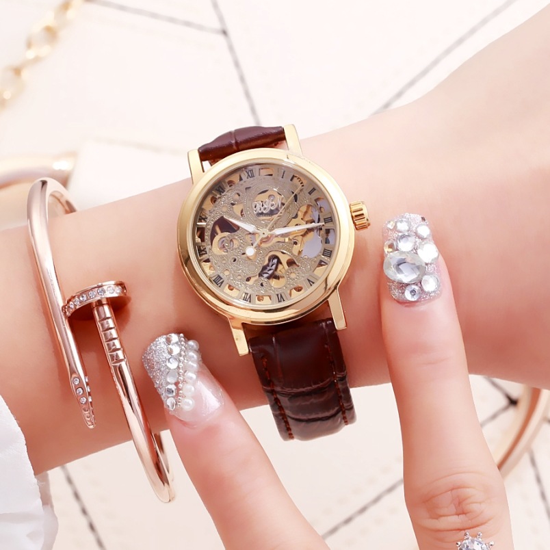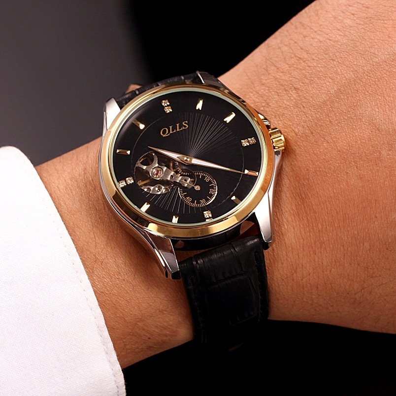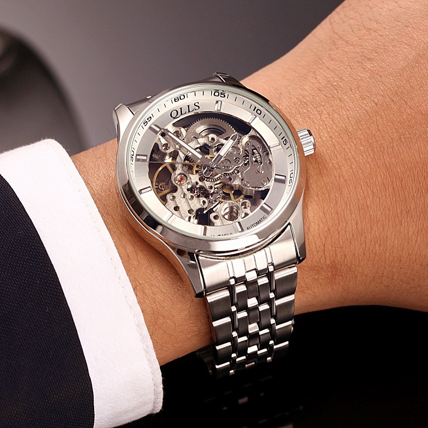 Qlls新型ファッションファッションベルト腕時計男性透かし彫り全自動腕時計底透き通った大皿機械時計卸売り