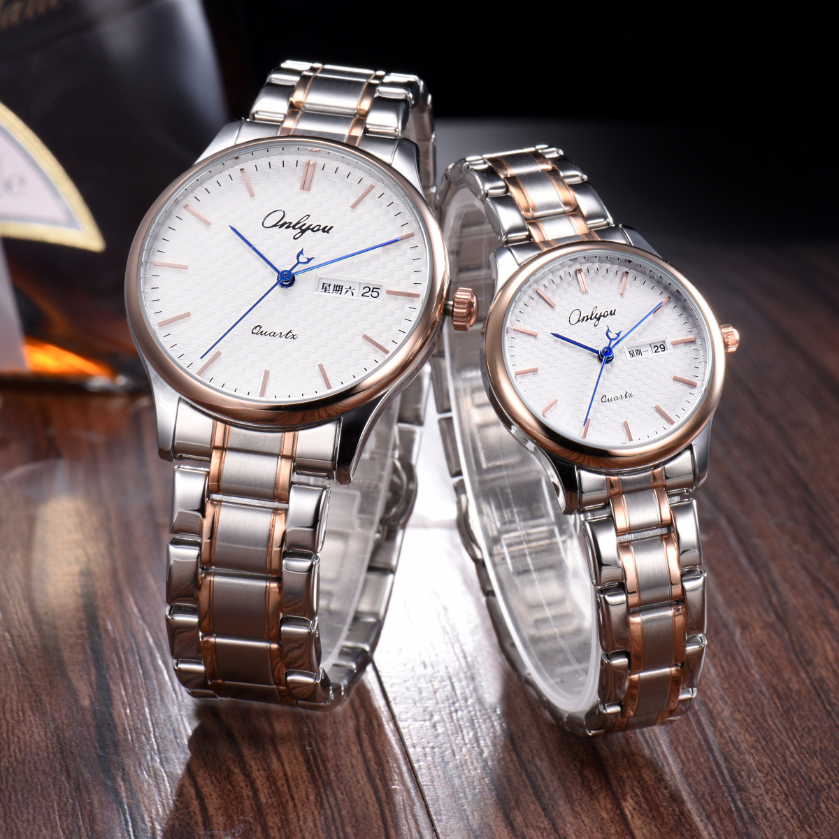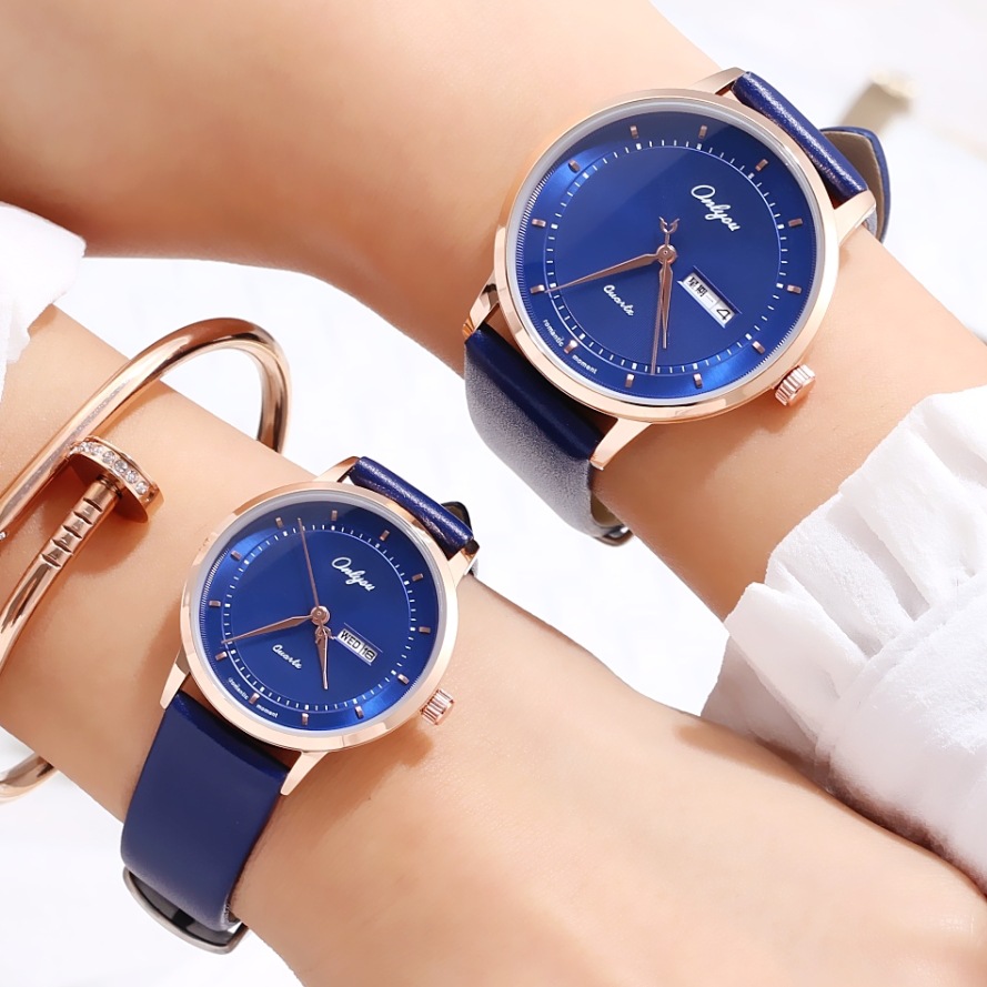 オリニカップル腕時計女性ファッショントレンド防水石英バンドダブルカレンダー女性時計カジュアル学生時計