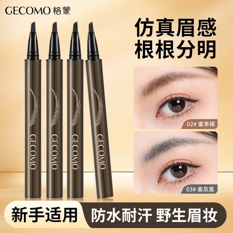 GECOMO ファインシェイプ スマートウォーター アイブロウ ペンシル、根元がはっきりしたワイルドアイブロウ、メイクアップ ミスト、ウォータープルーフ、汗に強いアイブロウ ペンシル