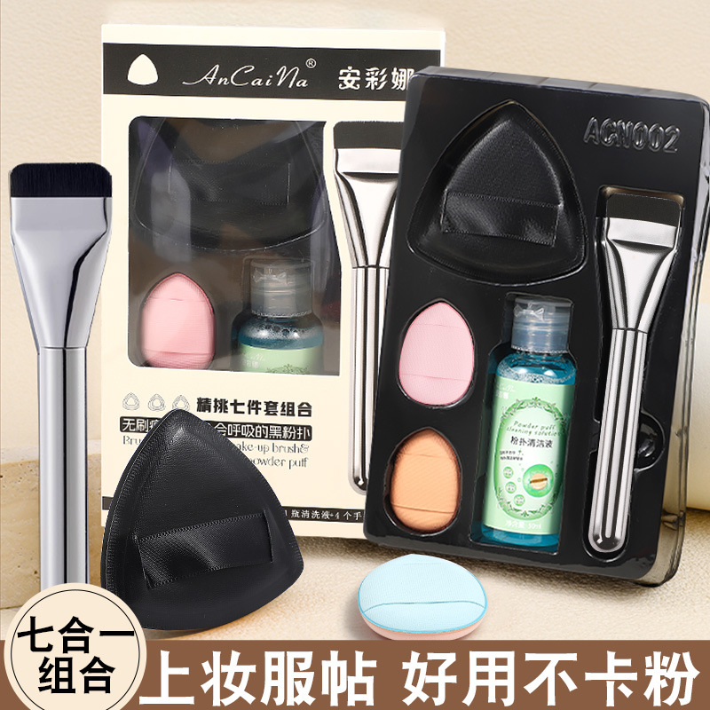 ブラックパイナップル トライアングルパフ 7点セット ファンデーション ワンラインメイクブラシ クリーニングクリーナー フィンガーコンシーラー エアクッションツール