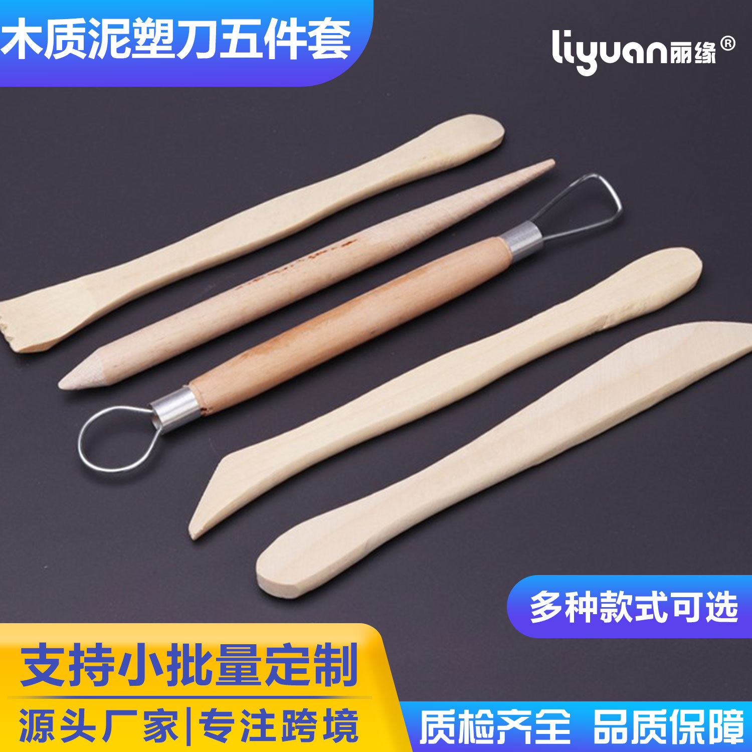 美術用品の泥塑5点セットの木質陶芸刀の軟陶彫刻刀の陶泥の泥塑工具の白地5点セット
