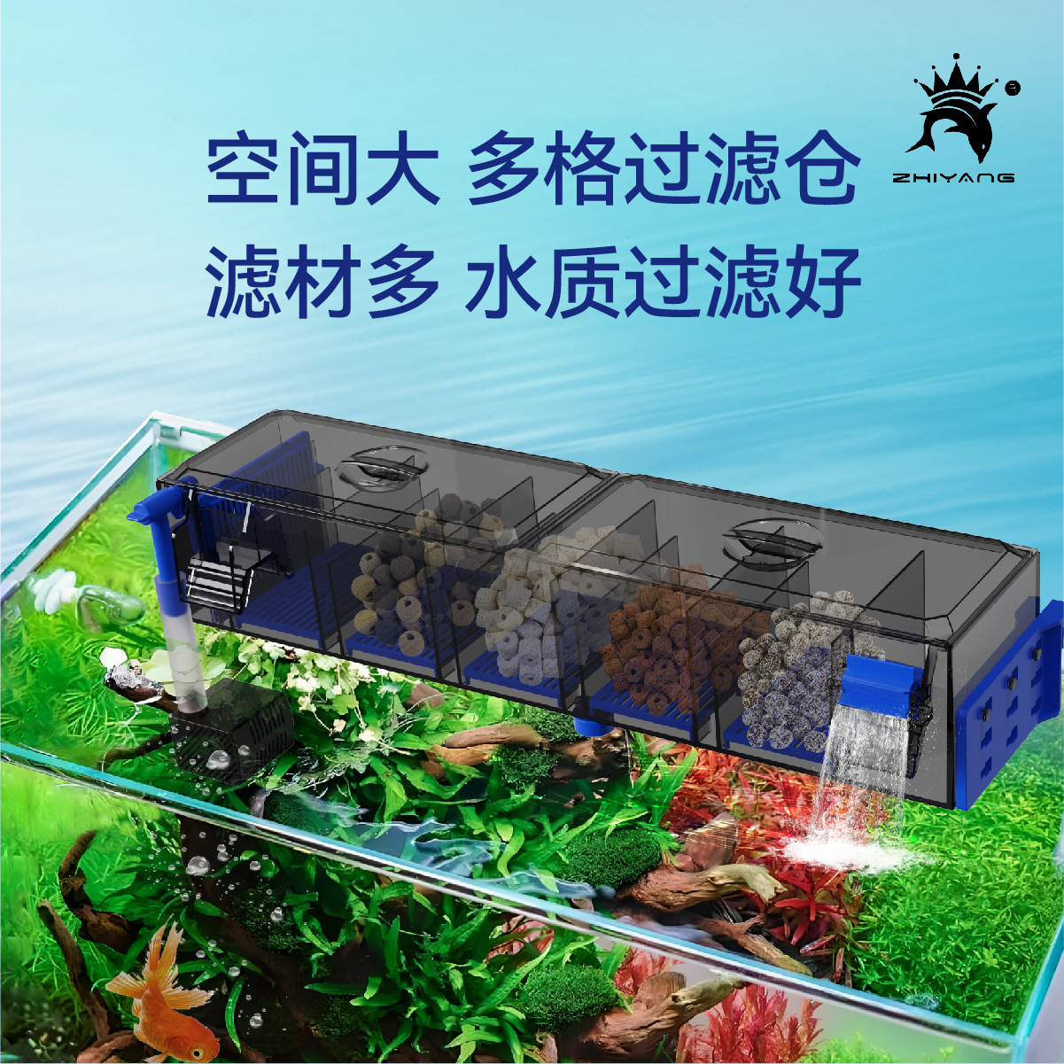 水族用品水槽水槽の水族箱の上に吊り下げ式の濾過倉庫を置いて浄水倉庫を濾過します。