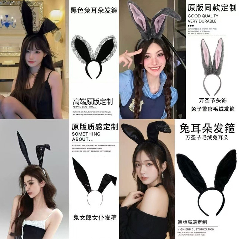 純粋な欲の黒いレースのウサギの耳のカチューシャのハロウィーンのセクシーな禁欲系のcosのかわいいバニーガールの頭のカチューシャの服