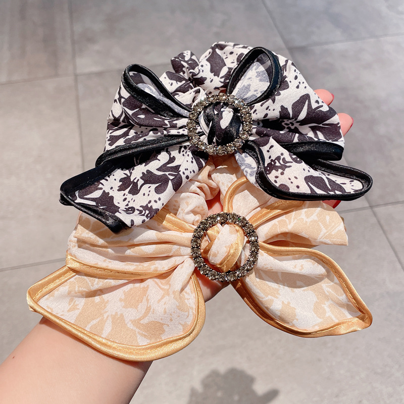 早春の新しいプリントの蝶結びの髪飾り韓国の超甘い少女の大腸の髪輪の後頭部の髪ひものアクセサリー