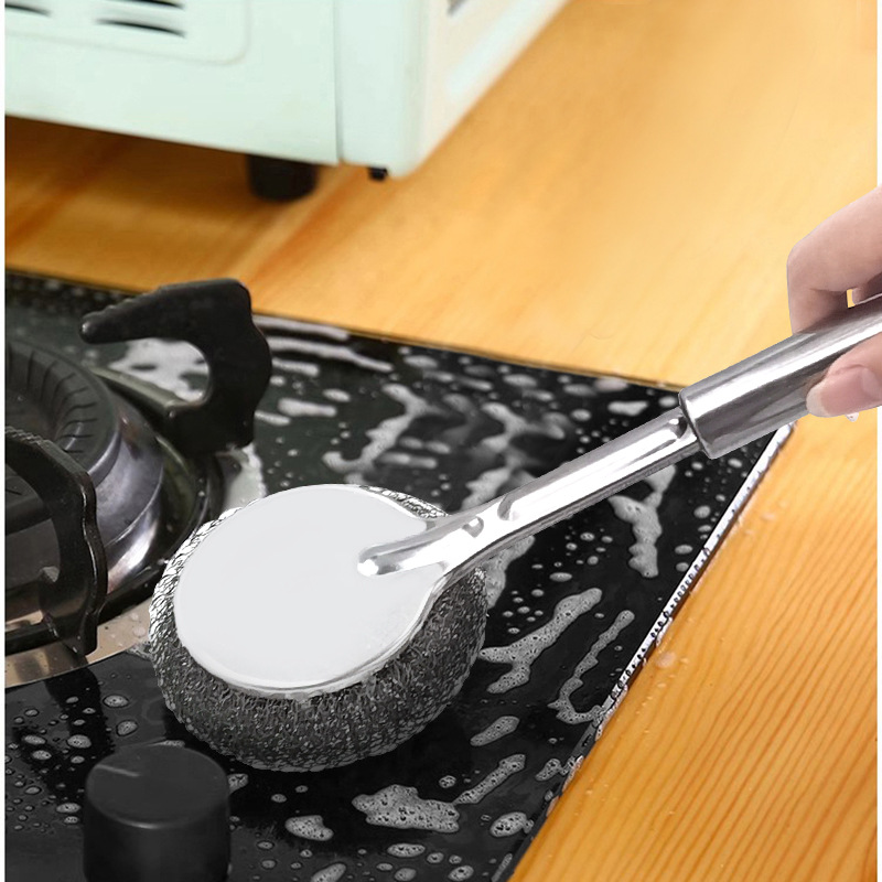 鍋や食器洗い用の長柄ワイヤーボールブラシ、ステンレス製クリーニングワイヤーボール、ハンドル付きブラシ、クリーニングボールブラシ