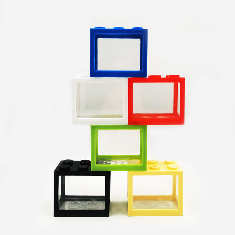 ミニ小型積み木斗水槽透明オフィスデスクトップ造景創意金金魚鉢プラスチックネット赤闘魚箱
