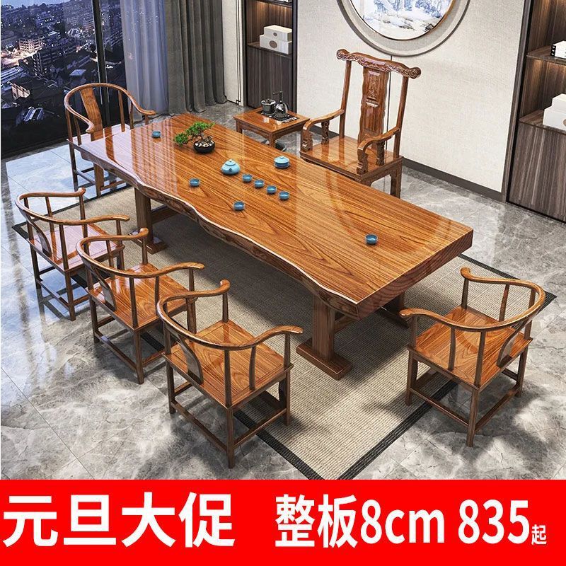 無垢材の大きなボードのティーテーブルと椅子の組み合わせ新しい中国風のホールボードホームオフィスティーテーブル