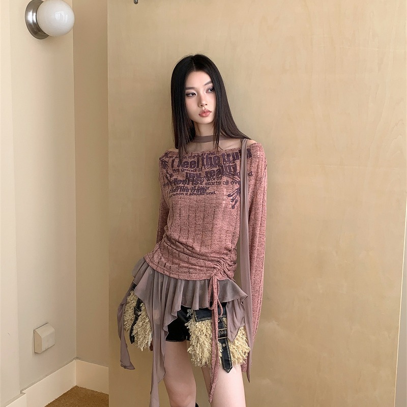 現物ギャル染めのラッパ袖の中の長いtシャツの肩の上着の女性