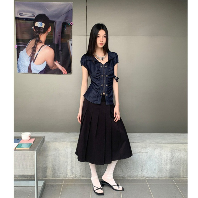 レトロなタックは腰の短い王女の袖のギャルの半袖のシャツの女性の新型を収めます。