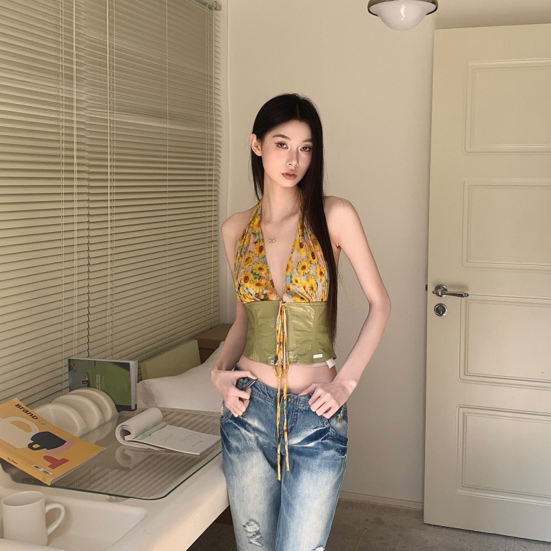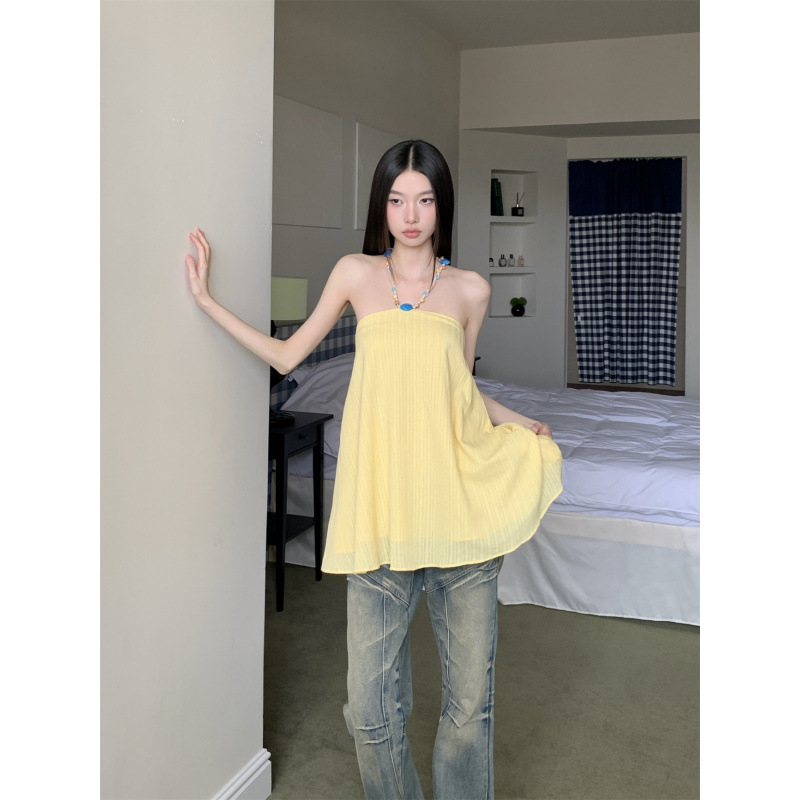 黄色のチューブトップホルターネックトップホットガールフレンチニッチデザイン
