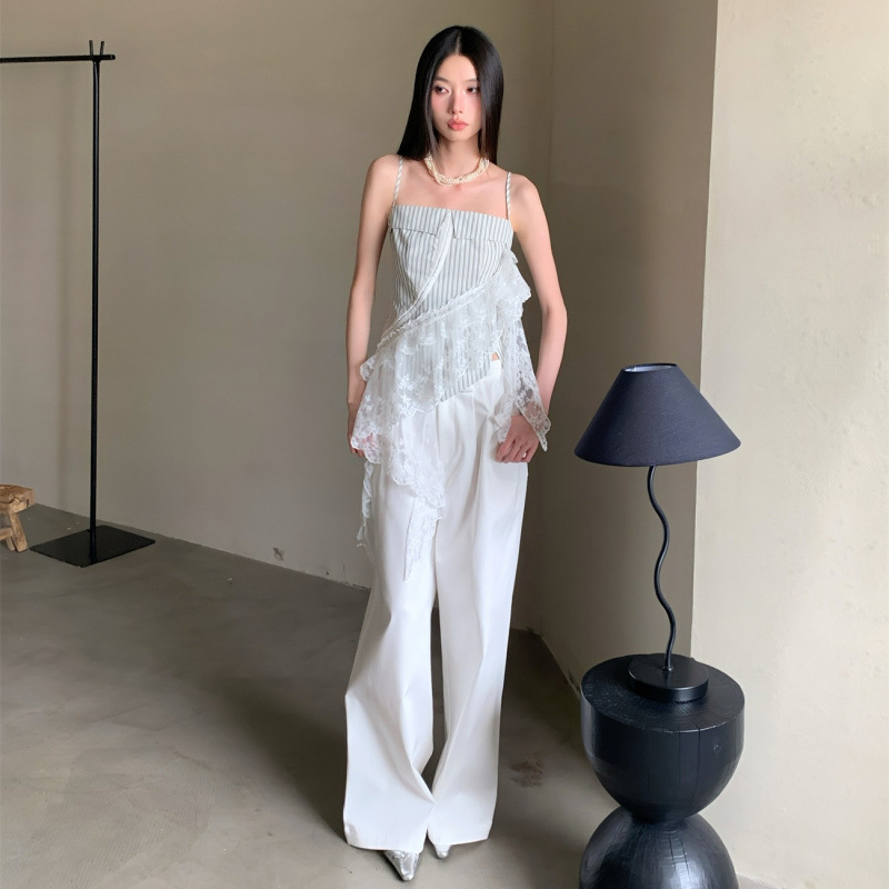 デザイン不規則なレースステッチキャミソールレディースノースリーブトップ