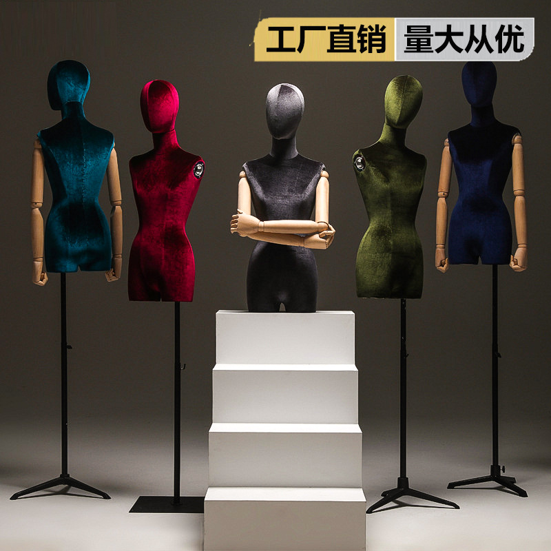衣料品店の服飾用フラットボディマネキン、女性用ベルベット製ウィンドウディスプレイマネキンスタンド、婦人服用偽マネキンヘッド、スタイリング用