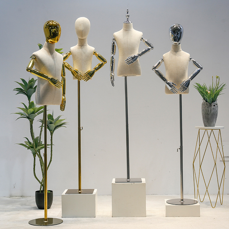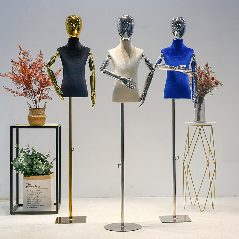 メッキ子供モデル洋服店ショーウインドー小道具ベルベット男女子供人形子供服モデル展示棚全身