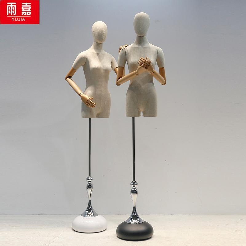 新しい服の店の高級な竹節麻のモデルの道具の女性の半身の韓国版の鎖骨のショーウインドーの展示棚の半身の棚