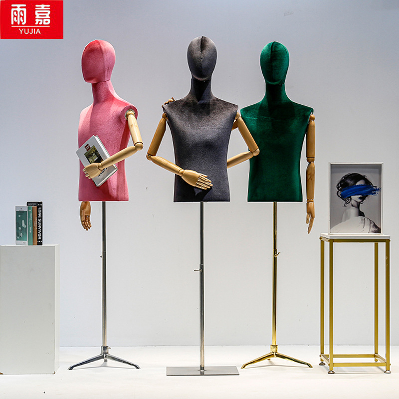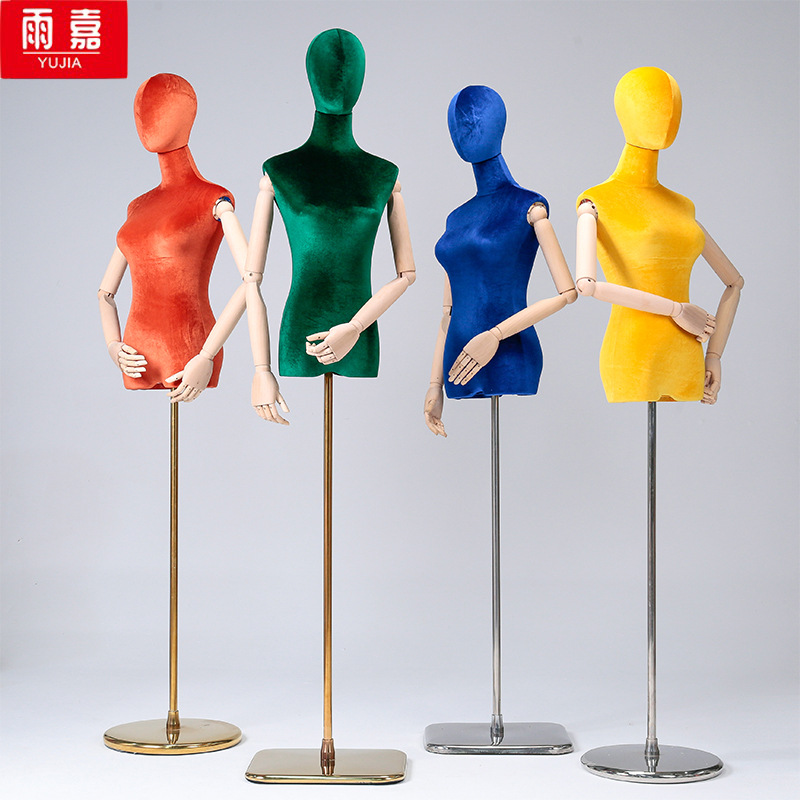 カラーベルベット平肩モデル道具女装服装店小胸半身人体ショーウインドーモデル展示棚全身