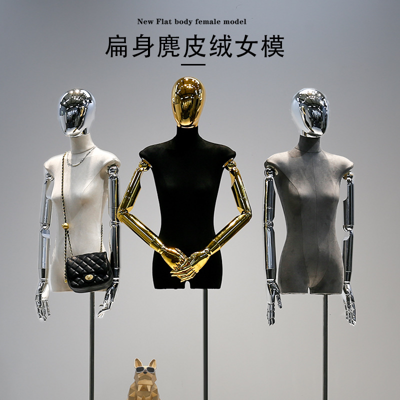 洋服店メッキ大平肩モデル展示棚半身スエード人形高級女装ショーウインドーダミー全身