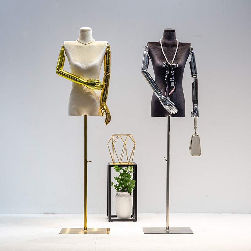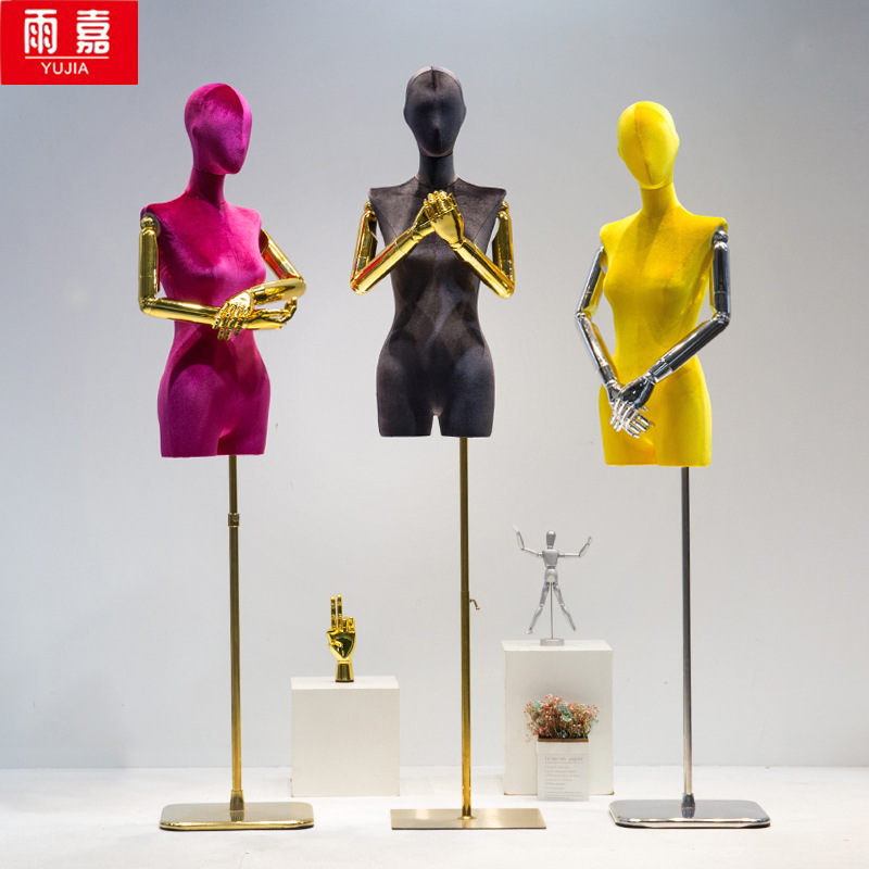 カラーベルベットメッキ手平肩モデル道具婦人服店ショーウインドー人台小胸全身モデル展示棚