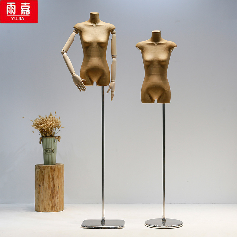 レトロ風服装店クラフト紙モデル道具女性平胸平身モデル半身人台偽人体展示棚
