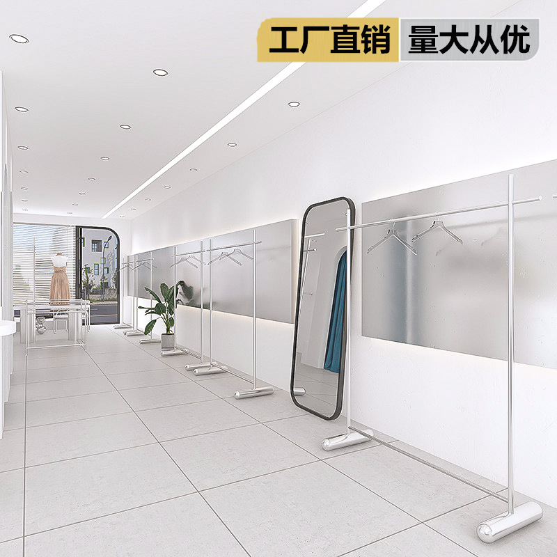 洋服店ネット赤ハンガーステンレス伸線銀棚床置き式ハンガー服装展示陳列棚