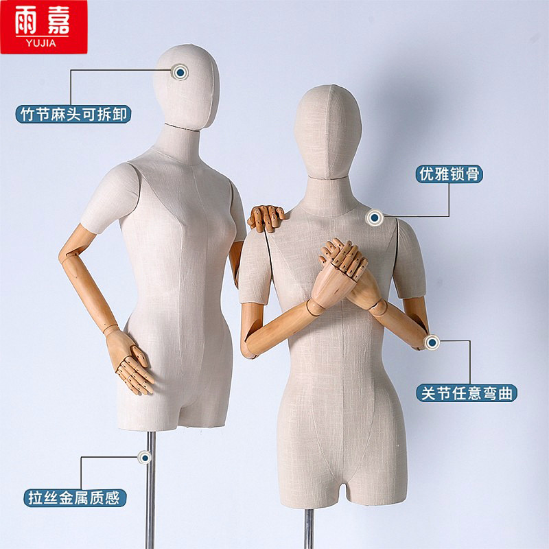 洋服店の高級竹の節麻のモデルの道具の女性の半身の韓国版の鎖骨のショーウインドーの展示棚の半身の人形の棚