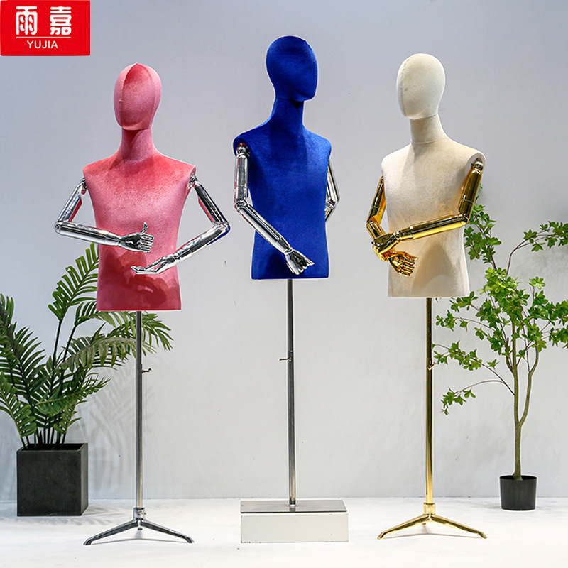 カラーベルベットメッキ手平肩モデル道具婦人服店ショーウインドー人台小胸全身モデル展示棚