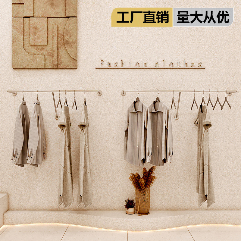 洋服店展示棚陳列棚壁掛けステンレス製伸線掛け洋服棚婦人服店棚デザイン