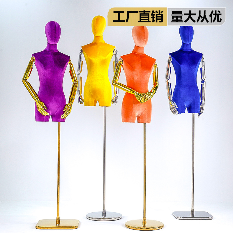 高級服店モデル道具女性半身人体ベルベットメッキ手全身展示棚ショーウインドーモデル棚