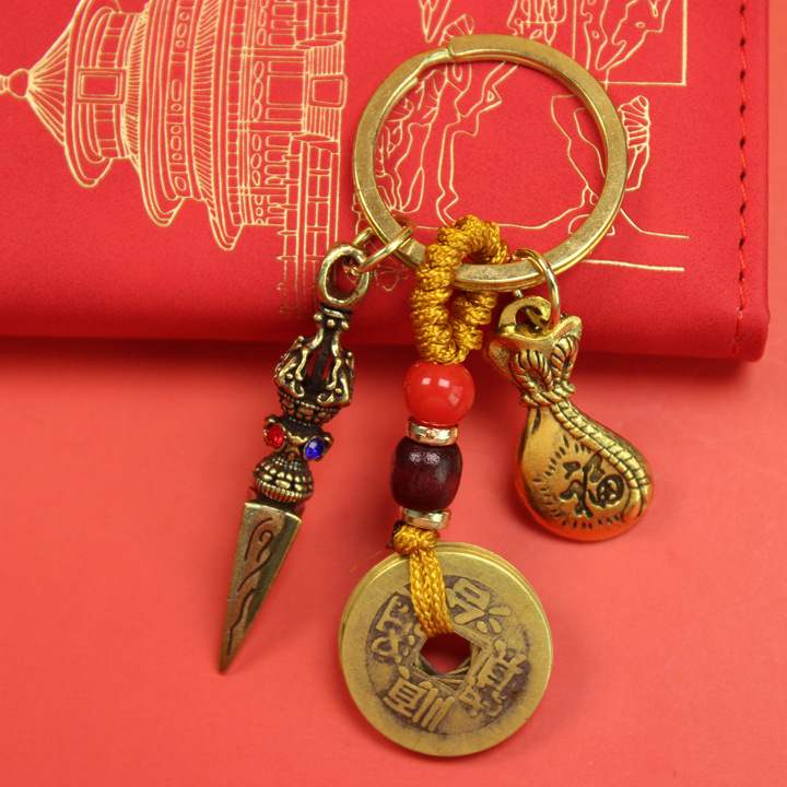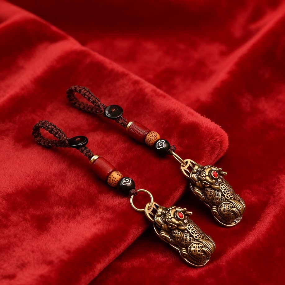 真鍮中空ピクシウスキーホルダー、男性と女性のための富のペンダント、車のキーバッグペンダント、絶妙な手作りジュエリー
