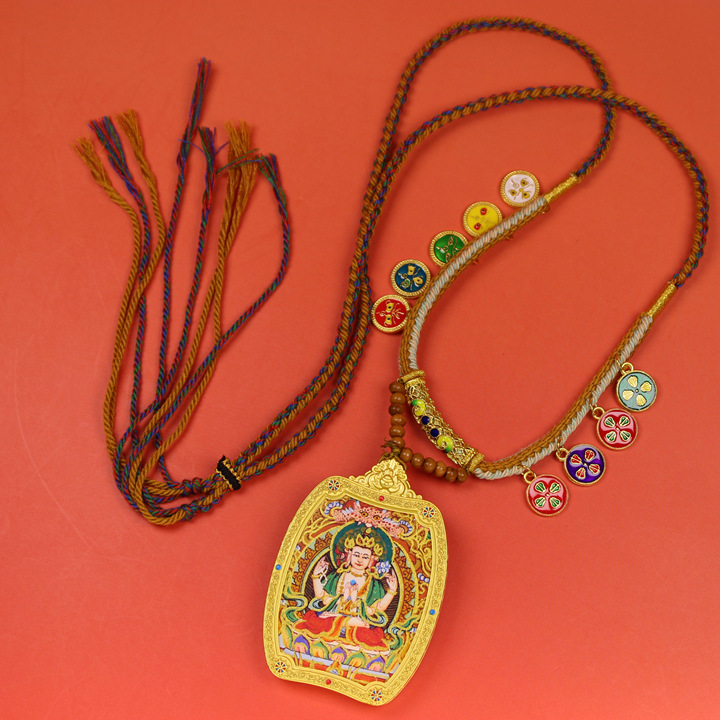 新しい五台山両面リンゴ型タンカ五位大守護聖人ペンダント仏ネックレス純粋な手作りロープ