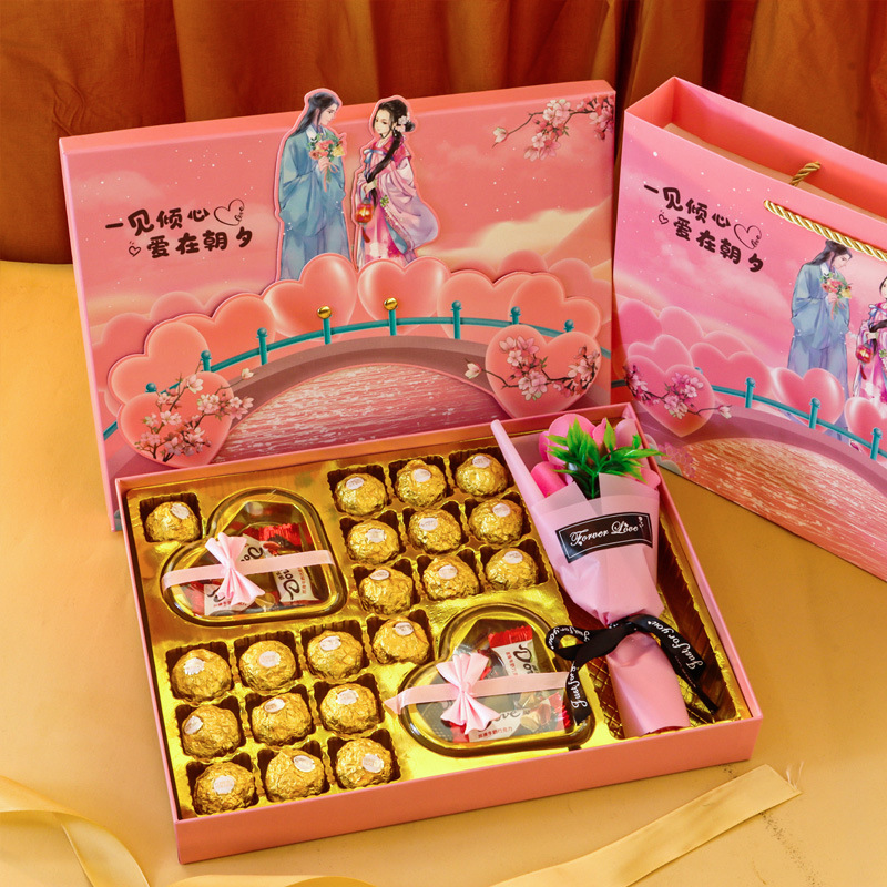 七夕のバレンタインデーギフト包装箱卸売、クリエイティブで人気の高い、折り畳み不要のチョコレートギフトボックス