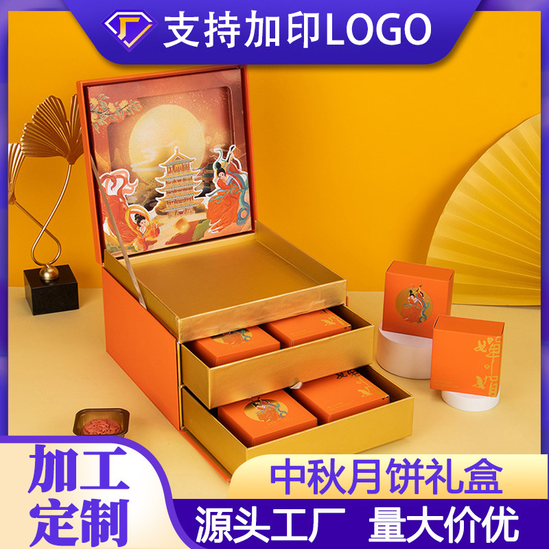 月餅箱箱中秋礼箱包装箱カスタマイズ蓋礼箱卵黄ショートスリーブボックス中秋礼箱空箱