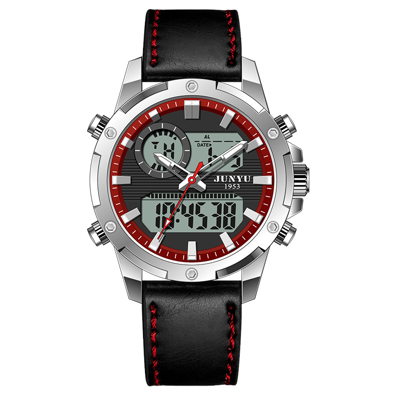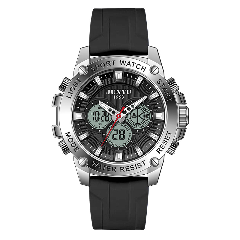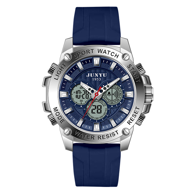 JUNYU駿钰新型学生腕時計双顕防水夜光多機能電子時計男性対外貿易腕時計