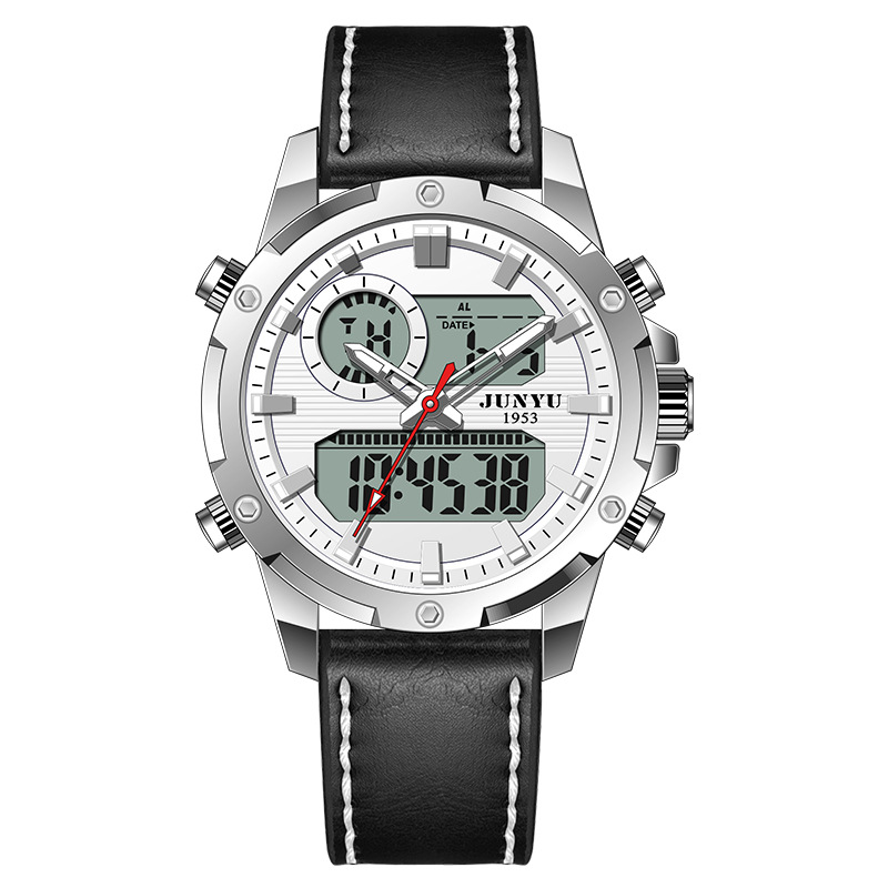 JUNYU駿钰新型学生腕時計双顕防水夜光多機能電子時計男性ベルト腕時計