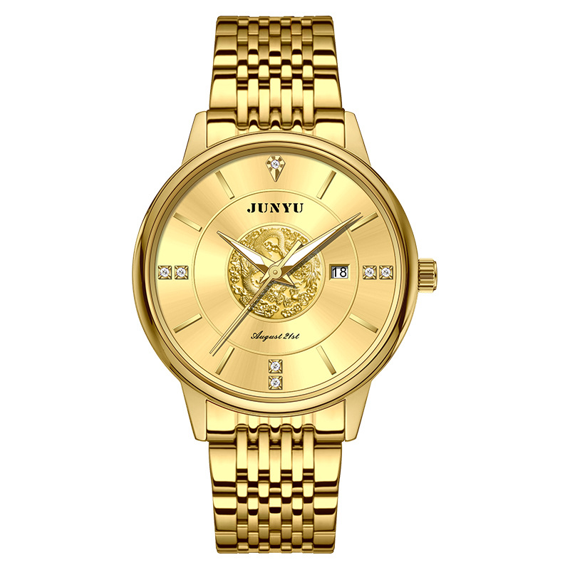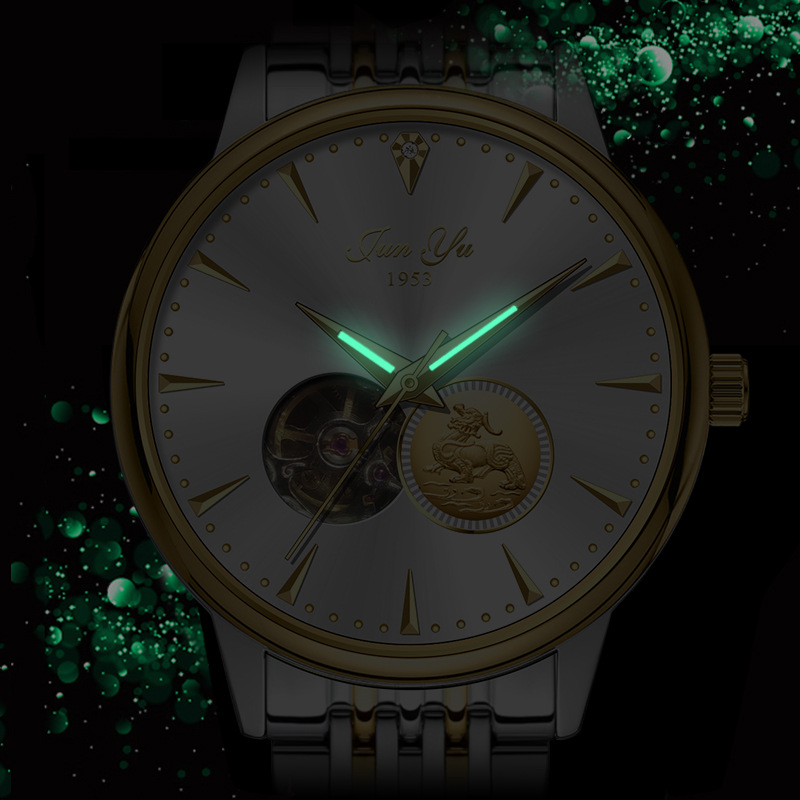 Junyu全自動コアトレンド夜光防水男性時計ステンレスバンド蝶ボタン男性腕時計起爆金