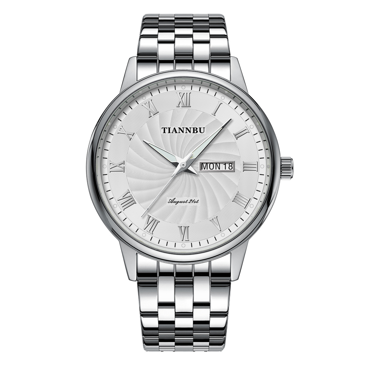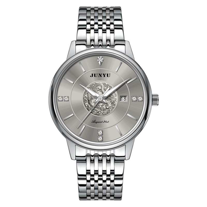 Junyuメンズ腕時計全自動カレンダー夜光防水非機械ビジネスクラシック腕時計鋼帯蝶ボタン