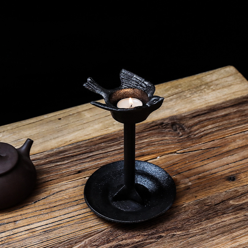鋳鉄の古い燭台のランプの手作りのレトロな小鳥の飛燕の中国式のレトロな茶道の明かりの家庭の装飾はろうそくを飾っています。