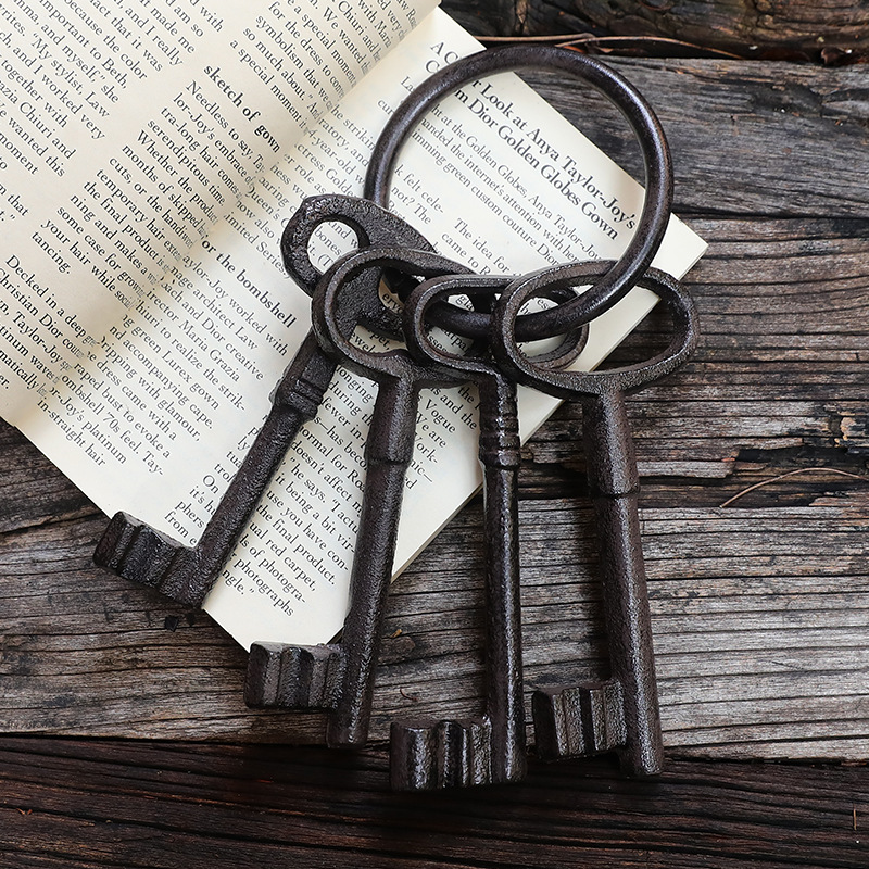 アメリカの田舎のレトロな古い鋳鉄の鍵のチェーンのペンダントの家庭の簡単な結婚式の結婚式の装飾の撮影の道