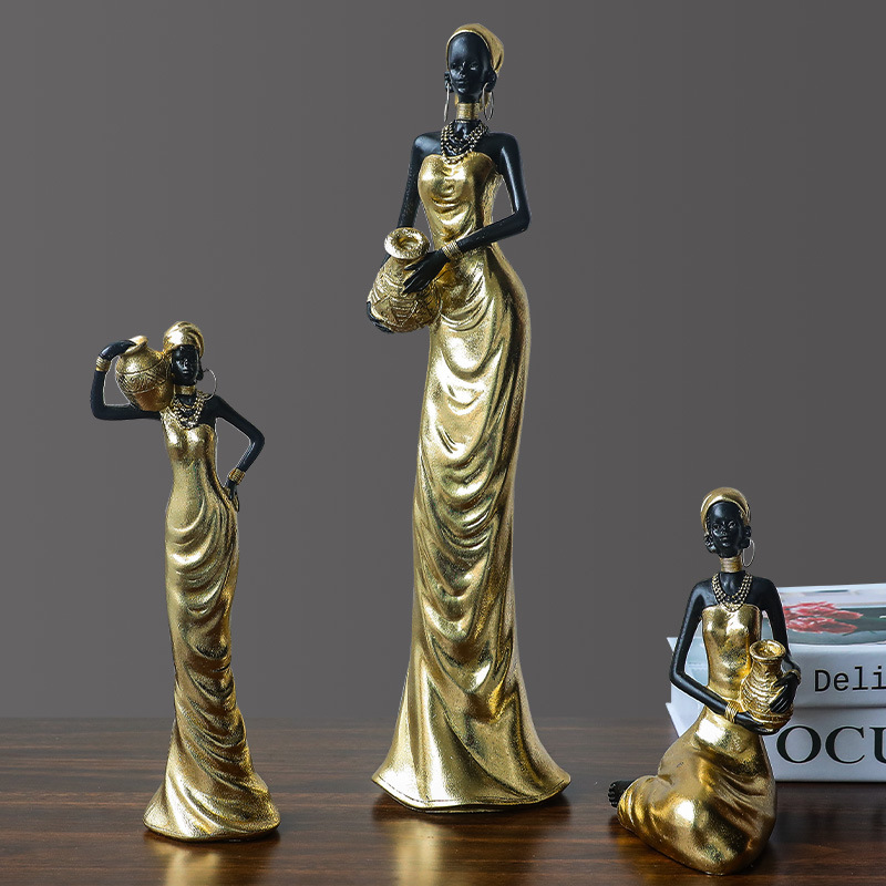 クリエイティブレトロアフリカ民族風黒人女性置物ホームリビングレストランテレビ戸棚装飾樹脂工芸