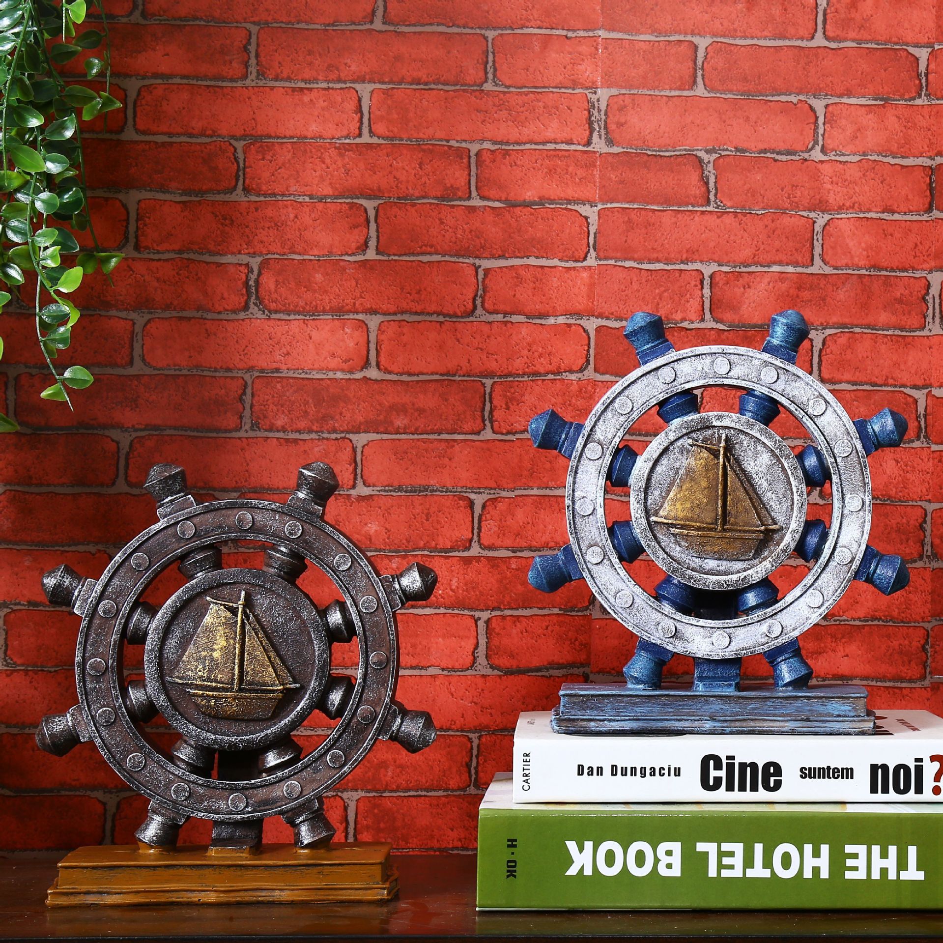 地中海レトロ海洋帆船船舵コンパス陳列道具ホームレストランバー装飾置物