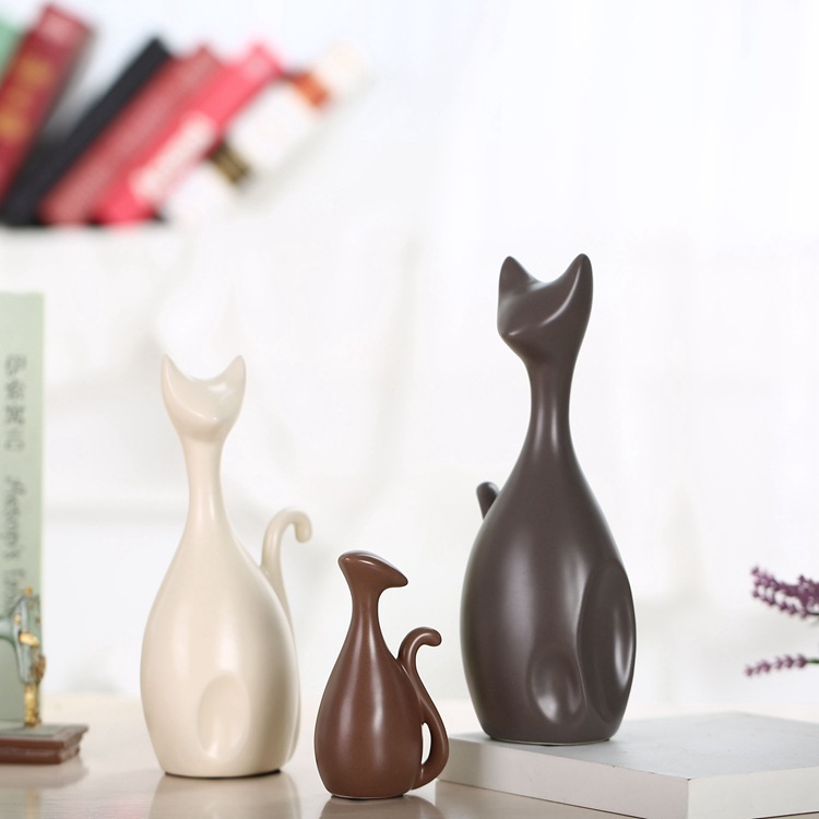 シンプルで現代的な抽象的な装飾工芸品ホテルの装飾品幸せな猫家族の高級陶磁器の置物