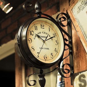 ヨーロッパ式鉄芸両面掛け時計創意アメリカ式両面掛け時計現代シンプルリビング家庭用時計レトロ時計
