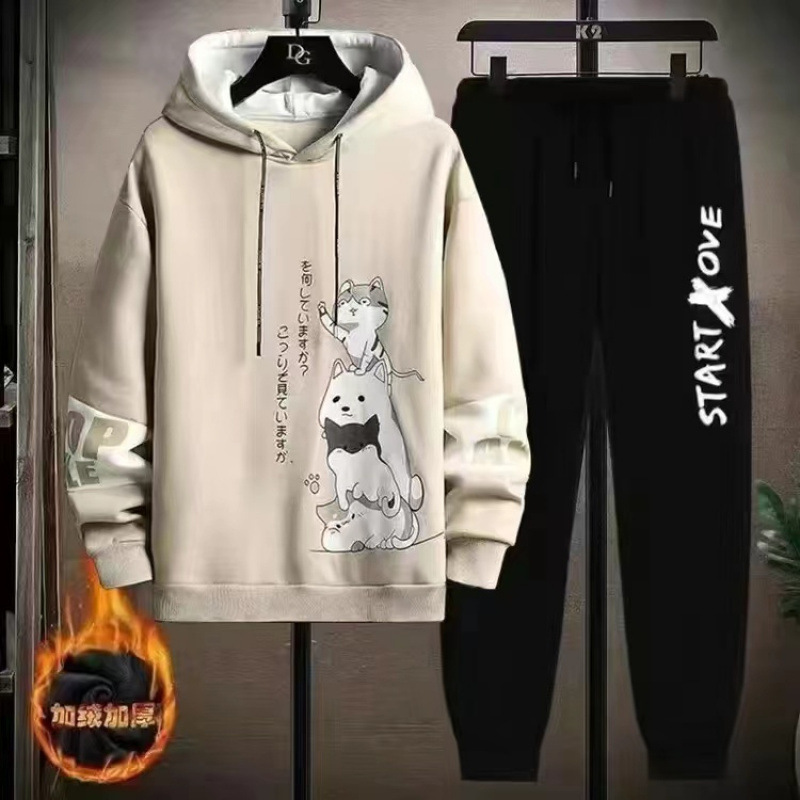 パーカー男加絨毛スーツ秋冬青少年韓国版中学生格好いいファッション帽子付きパーカーカジュアルスポーツウェア