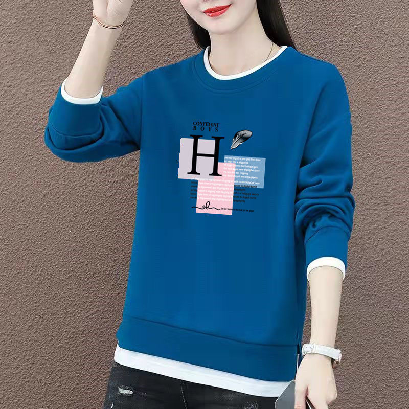 綿の偽の2つの衛衣の女性の春と秋の薄い金の2024の新型の爆発的な金のゆったりしている長袖のtシャツの女性の年齢を減らします上着