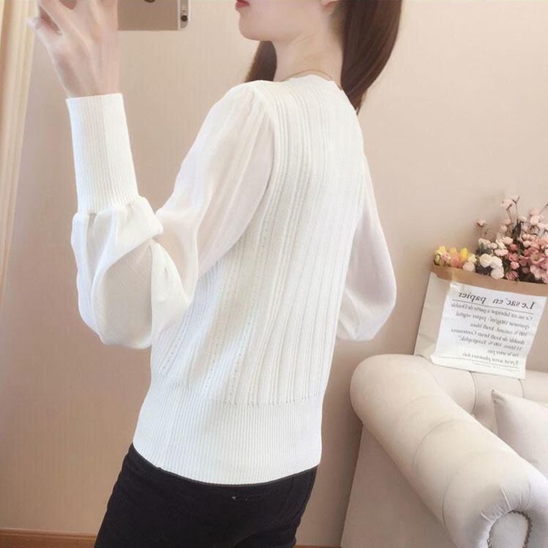 気質の小さい衆vネックのニットの女性の長袖の2023の新型の春と秋の偽のカーディガンのセーターの薄いタイプのシフォンの上着