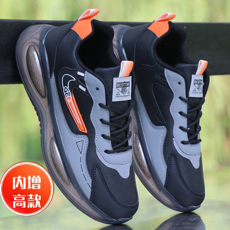 ランニング男子靴秋冬軟底皮面防水男性滑り止め靴軽量制震カジュアルシューズ潮金