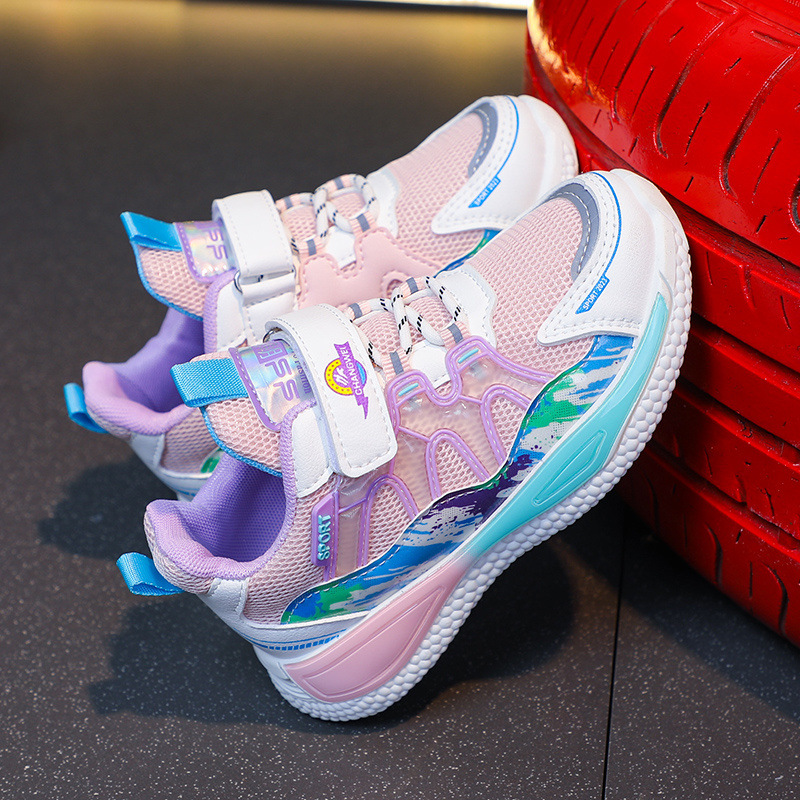 女の子の運動靴2024春夏の新型の中で子供のレジャーネットの靴の通気性の柔らかい底の子供のファッションの大きい頭の靴