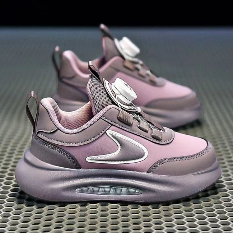 女の子の運動靴2024春秋の新型の子供の回転ボタンのお父さんの靴の男の子の皮の面のランニング靴の中で大きい子供