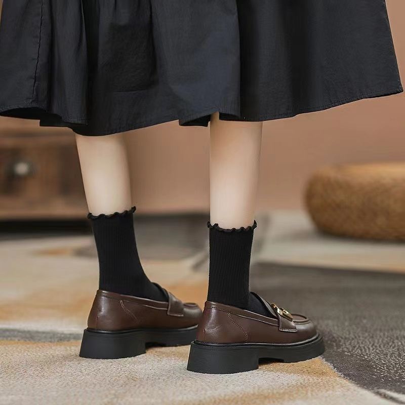 柔らかい底の楽福の靴の女性の2024春の秋の新型の小さい金貨の靴の英倫の厚い底の1足は小さい靴を漕ぎます。